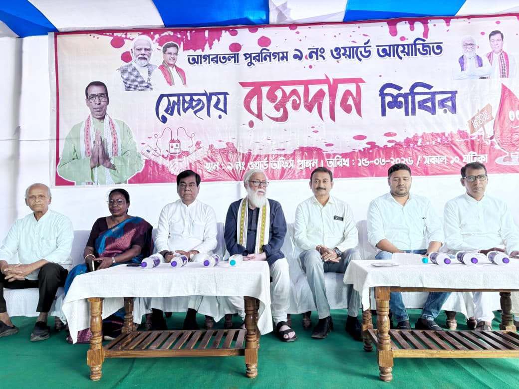 ত্রিপুরা রাজ্য কর্মচারী সংঘের উদ্যোগে অনুষ্ঠিত স্বাস্থ্য শিবিরে উপস্থিত ছিলেন আগরতলা পুর নিগমের মেয়র দীপক মজুমদার, মেয়র ইন কাউন্সিলর তুষার ভট্টাচার্য সহ অন্যান্য গণ্যমান্য ব্যক্তিবর্গ। 04/04/2026