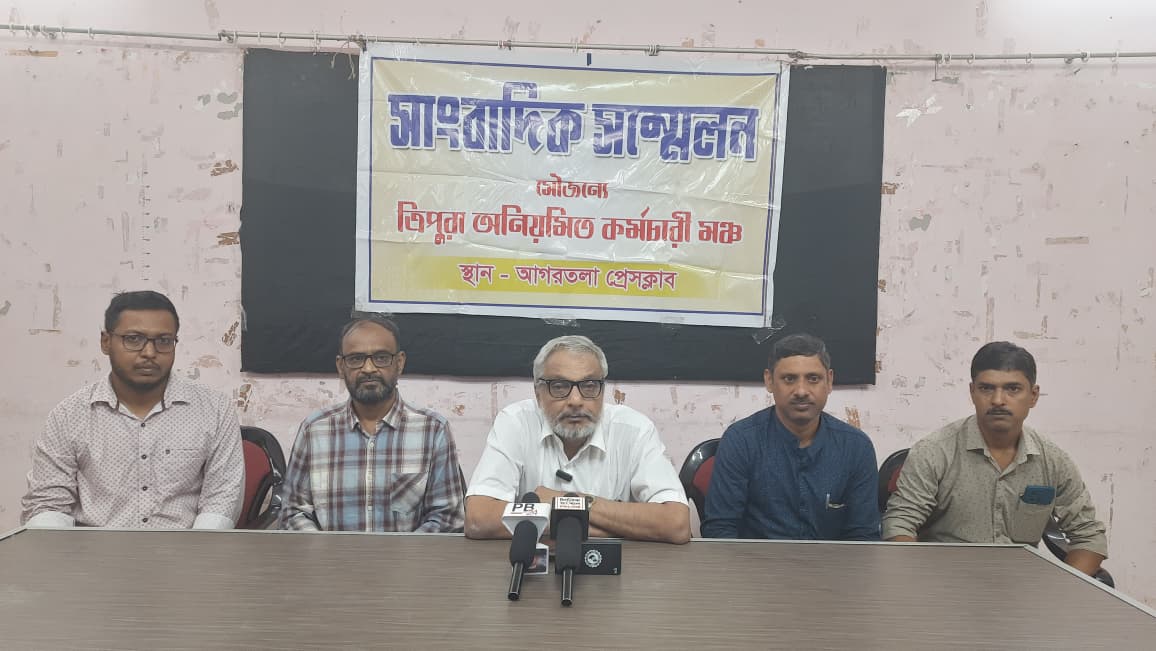 ত্রিপুরা অনিয়মিত কর্মচারী মঞ্চের সাংবাদিক সম্মেলনে দাবি পূরণে সরকারি নীরবতার তীব্র সমালোচনা, ডিসেম্বর ও জানুয়ারিতে বৃহত্তর আন্দোলনের ঘোষণা।