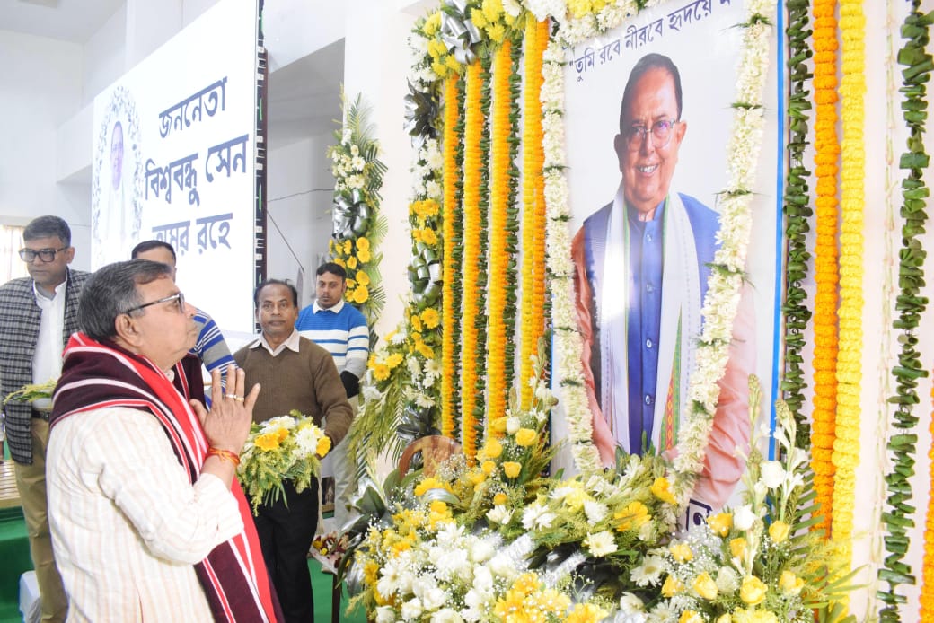 ত্রিপুরা বিধানসভায় অনুষ্ঠিত হল প্রয়াত প্রাক্তন অধ্যক্ষ বিশ্ববন্ধু সেনের স্মরণসভা। স্মরণসভায় তাঁকে শ্রদ্ধা জানিয়ে বক্তব্য রাখেন বিধায়ক ও মন্ত্রীরা। সংসদীয় শালীনতা, দৃঢ়তা ও মানবিকতায় তিনি আজও স্মরণীয়—মন্তব্য করেন মন্ত্রী রতন লাল নাথ। ত্রিপুরার বিধানসভা ও রাজনৈতিক ইতিহাসে তাঁর অবদান চিরকাল অম্লান থাকবে।
