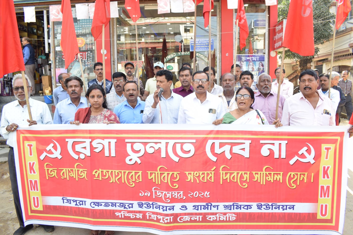 বাংলাদেশের নেতাদের উস্কানিমূলক মন্তব্যের প্রতিবাদে আগরতলার বাংলাদেশ সহকারী হাইকমিশন অফিসের সামনে বিক্ষোভে সামিল হল মথা কর্মীরা। 19/12/2025