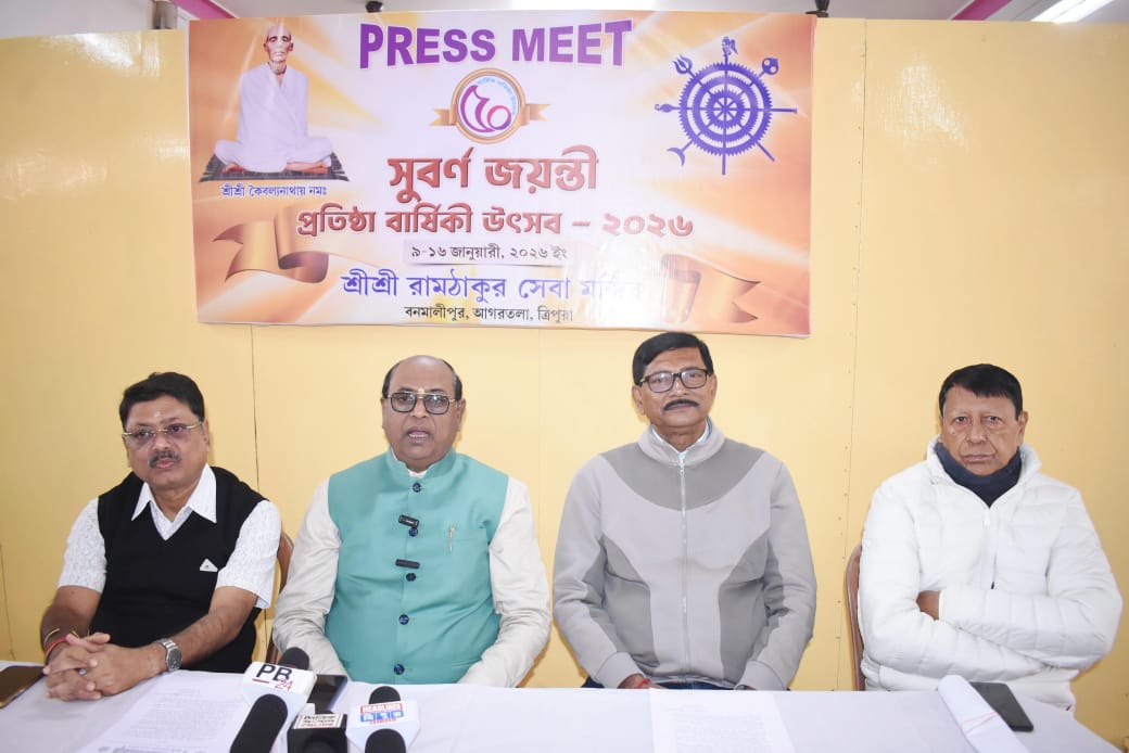 রামঠাকুর সেবা মন্দিরের সুবর্ণ জয়ন্তী প্রতিষ্ঠা বার্ষিকী উপলক্ষে সাংবাদিক সম্মেলন। বুধবার আগরতলার বনমালীপুরে অবস্থিত রামঠাকুর সেবা মন্দিরে আয়োজিত হয় এই সম্মেলন। উপস্থিত ছিলেন সেবা মন্দিরের সাধারণ সম্পাদক স্বপন কুমার বণিকসহ অন্যান্য সদস্যরা। সুবর্ণ জয়ন্তী উৎসবের বিভিন্ন কর্মসূচি সম্পর্কে বিস্তারিত তুলে ধরেন সাধারণ সম্পাদক।