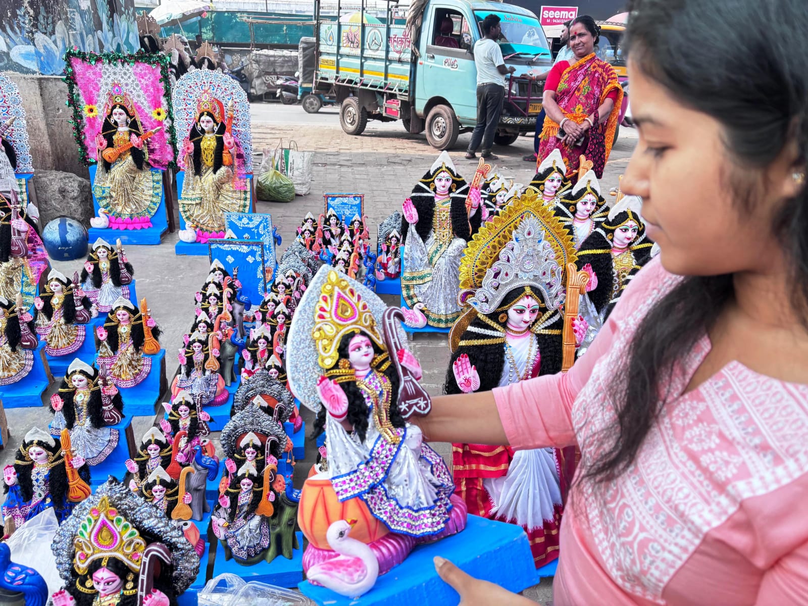 ২৩শে জানুয়ারি একই দিনে সরস্বতী পুজো পড়ায় স্কুল-কলেজের ছাত্রছাত্রীদের মধ্যে উচ্ছ্বাস থাকলেও বাজারে জিনিসপত্রের চড়া দামে চিন্তায় পড়েছেন সাধারণ মানুষ। মূল্যবৃদ্ধির প্রভাব পড়েছে সরস্বতী মূর্তি থেকে শুরু করে ফল-ফুল ও পুজোর সামগ্রীতেও।