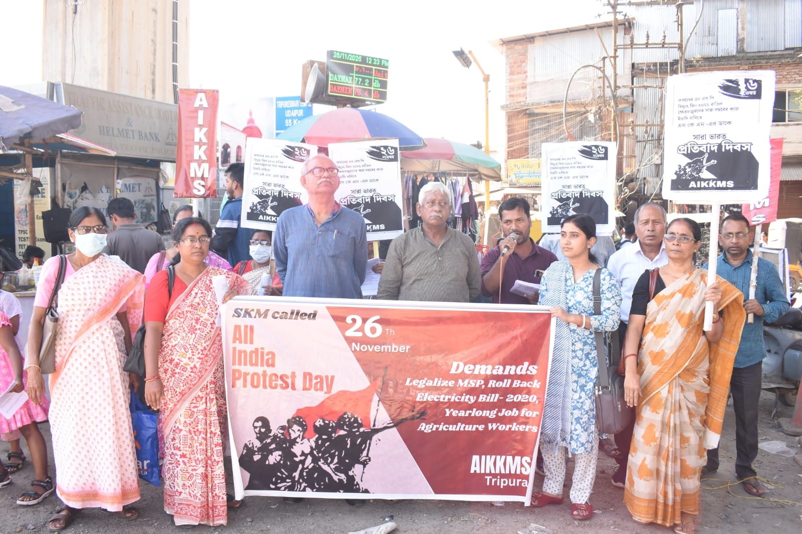 ৩টি কালা কৃষি আইন প্রত্যাহারের দাবিতে দিল্লির ঐতিহাসিক কৃষক আন্দোলনের ৫-ম বর্ষপূর্তিকে কেন্দ্র করে ‘সংযুক্ত কিষান মোর্চা’-র ডাকে সারা দেশের রাজ্য রাজধানীগুলোতে অনুষ্ঠিত হচ্ছে প্রতিবাদ কর্মসূচি। তার অংশ হিসেবে আজ আগরতলার বটতলায় SKM-এর শরিক সংগঠন AIKKMS-এর উদ্যোগে এক প্রতিবাদ সভা অনুষ্ঠিত হয়, যেখানে কৃষি আইন বিরোধী আন্দোলনের পুনরুজ্জীবন ও কৃষকদের ন্যায্য অধিকারের দাবি তুলে ধরা হয়।