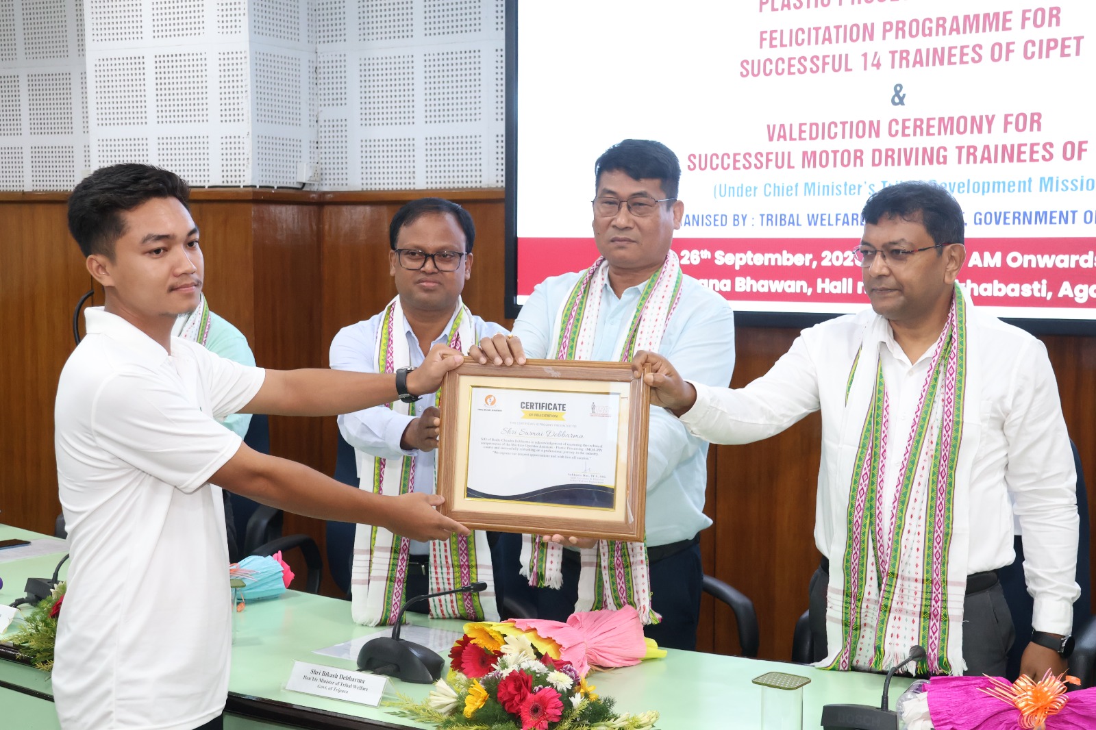 CIPET-এর প্রশিক্ষণার্থীদের সংবর্ধনা অনুষ্ঠানে উপজাতি কল্যাণ দপ্তরের মন্ত্রী বিকাশ দেববর্মা, প্রজ্ঞা ভবন, আগরতলা